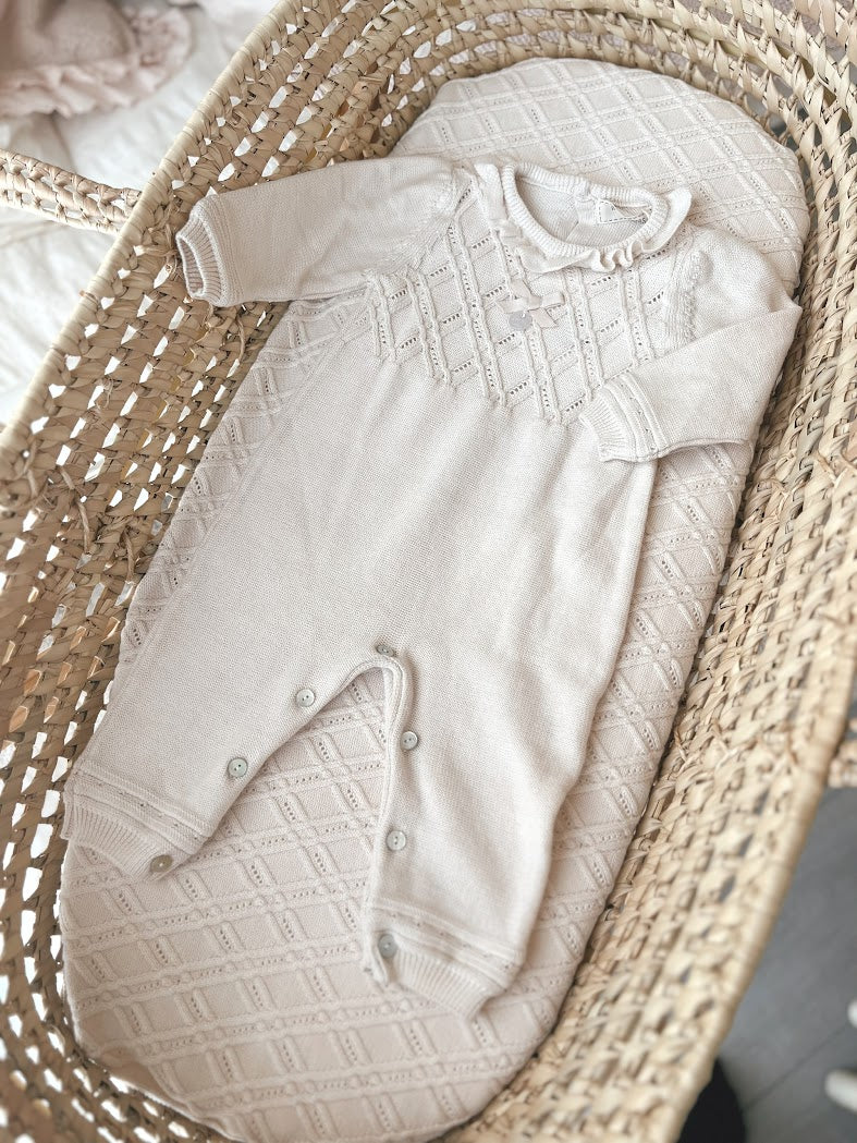 Dit exclusieve boxpakje is supergaaf te combineren met een bijpassend gebreid dekentje of gebreide babyslofjes in dezelfde kleur beige.