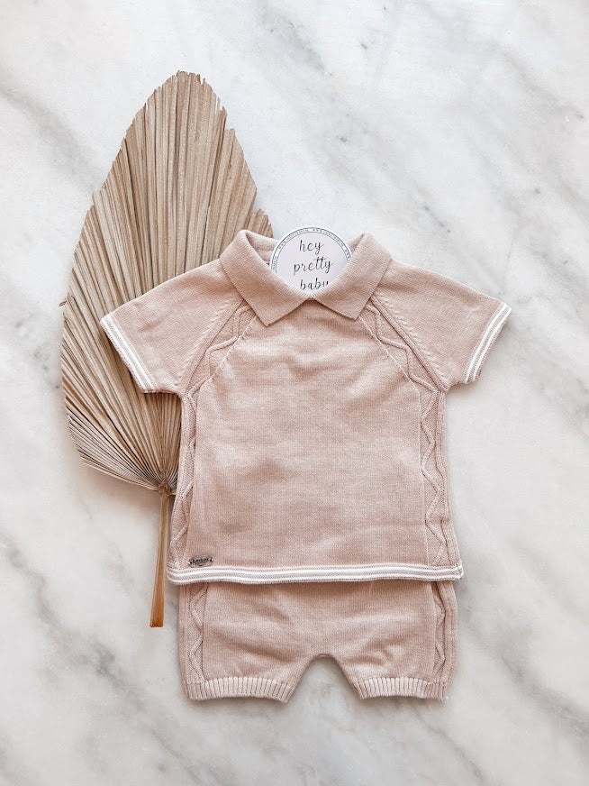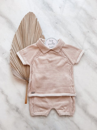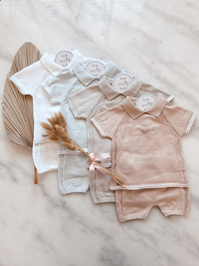 Dit superschattige polo babysetje is tweedelig en gebreid van 100% katoen. Het babysetje heeft mooie details en is heerlijk luchtig voor de zomer.