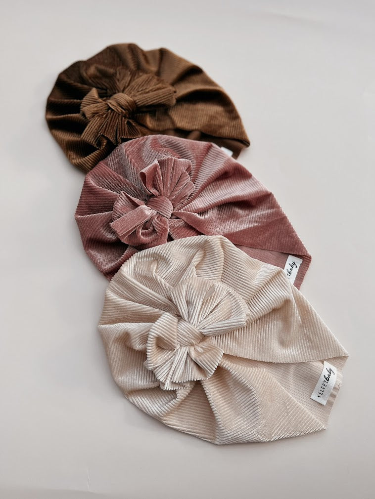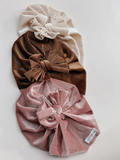 Verkrijgbaar in 3 mooie kleuren: beige, bruin en oudroze. Leuk om te stijlen met alle soorten schattige babykleertjes & als mutsje buiten te gebruiken. Zo bescherm je het hoofdje van je baby tegen de koud, maar is je baby tegelijkertijd ontzettend stijlvol. Een echte baby musthave dus.