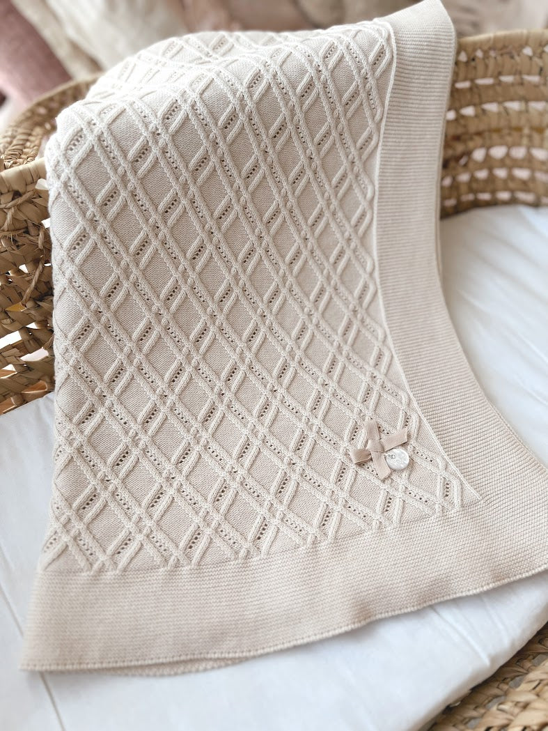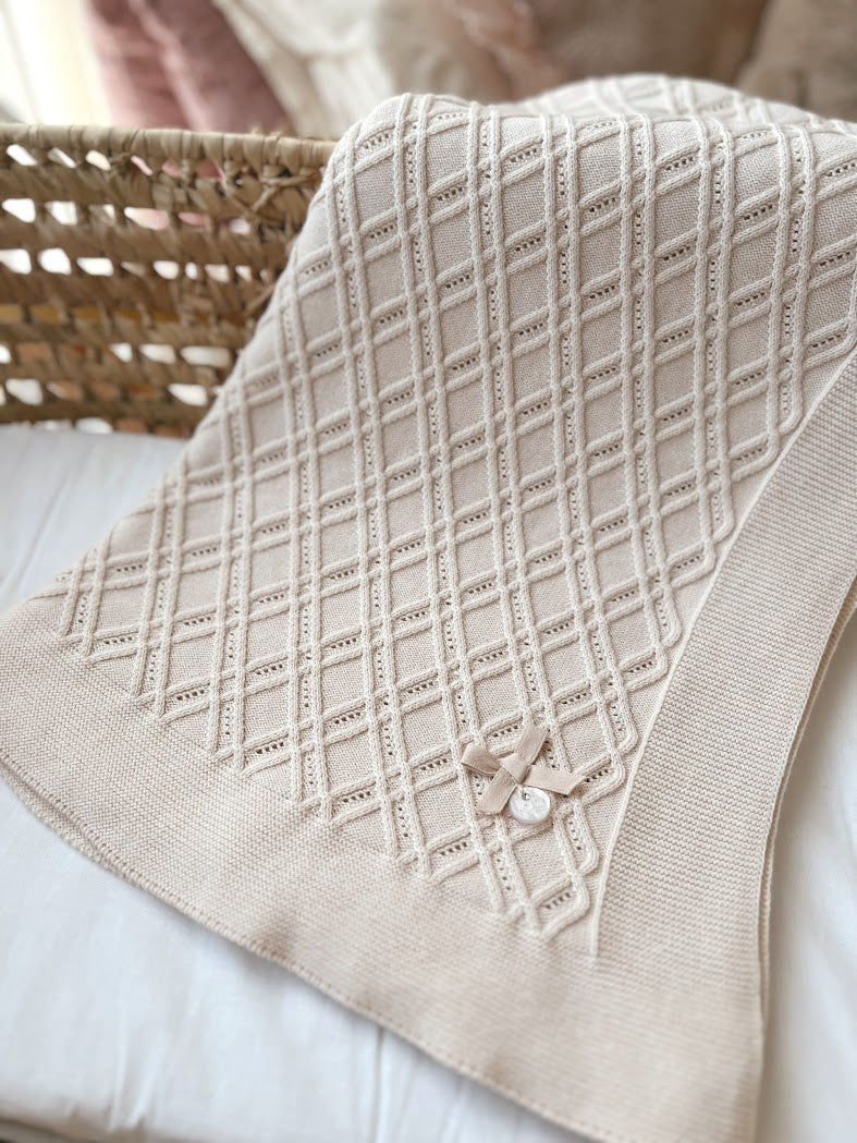 GEBREID BABYDEKENTJE KRUISLINGS PATROON - beige