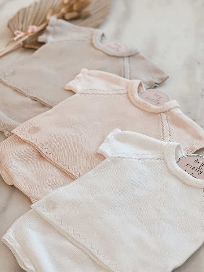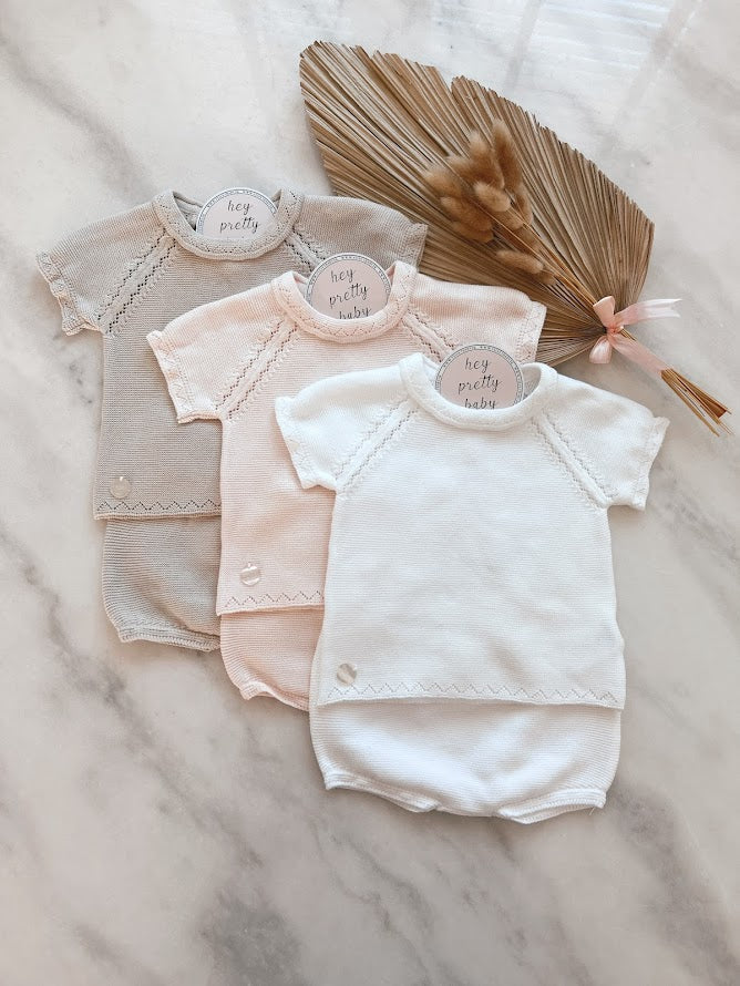 gebreid babypakje zomer grijsbruin