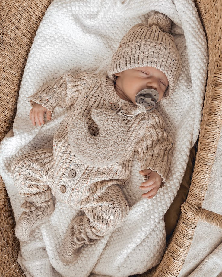 Ce combishort robuste a de beaux boutons en bois au milieu, un beau motif côtelé et peut être porté unisexe. Tellement amusant pour les garçons et les filles. Le combishort est tricoté à partir de 100% coton. Le coton est un tissu respirant et anti-allergique. Le meilleur choix pour votre bébé.