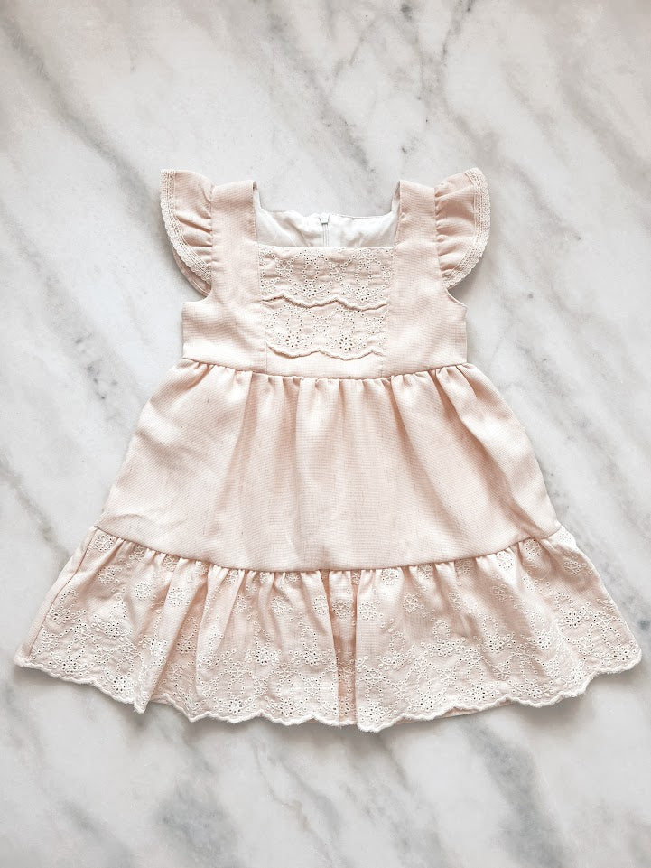 Cette belle robe d'été a un look romantique et est magnifiquement finie avec des manches en dentelle et à volants. La robe a une fermeture éclair à l'arrière, de sorte qu'elle est facile à mettre et à enlever. Cette robe est idéale pour une belle journée d'été ou une occasion spéciale comme un mariage ou autre fête.